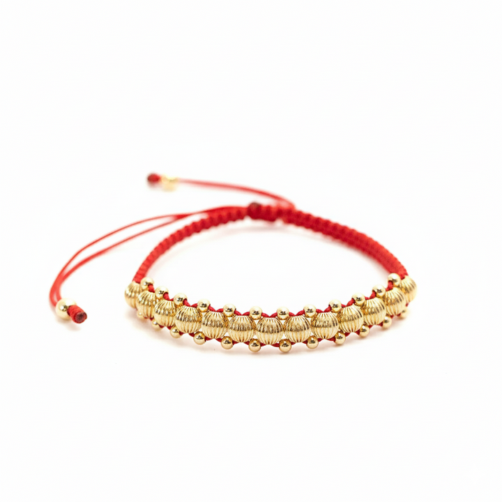 BRAZALETE TRENZA DORADA ROJA